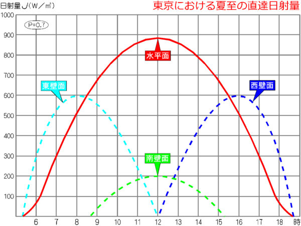 なぜならば、夏期に南面が受ける直達日射量は少ないからです。