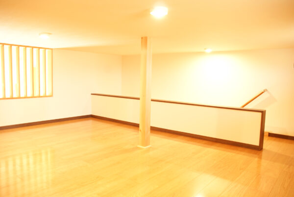 また、常設の階段を設置し、10帖強のロフトを設けています。段々と物は増えていくことでしょう。収納としても良し、趣味の空間としても良しですね。
