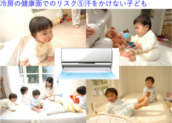 しかし、3歳までの期間を冷房の効いた空間で過ごすことが多いと、能動汗腺は発達しにくく、低体温症、夏バテしやすい、熱中症になりやすいといった状態を招くこととなるのです。