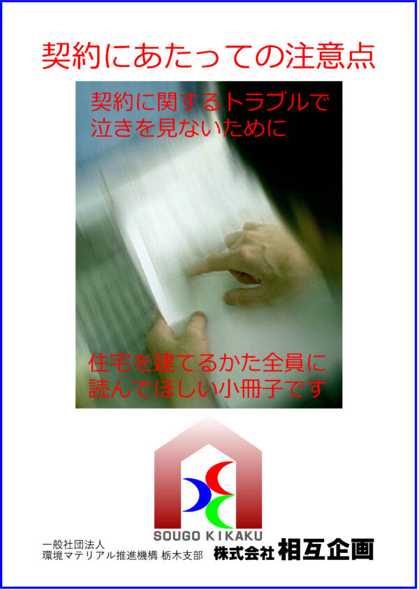 「自分で学ぶ家づくり塾」今回の一冊は「契約にあたっての注意点」